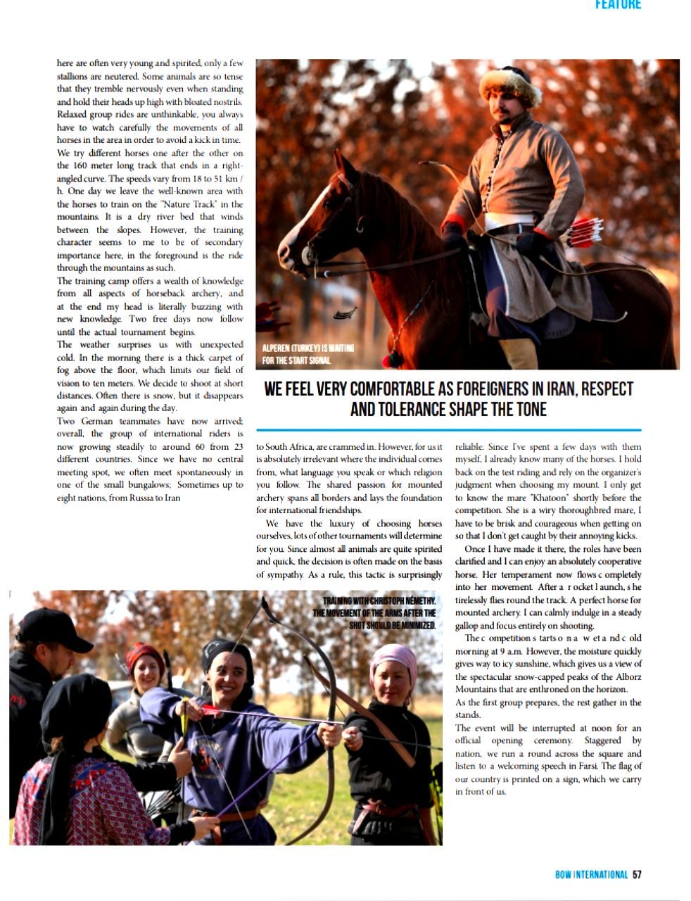 دستهها بازتاب خبری سومین مسابقات جهانی هنرهای رزمی سواره بازتاب خبری سومین مسابقات جهانی هنرهای رزمی سواره (جام ابریشم) مورخ ۲۹ آبان الی ۳آذر ۹۸در نشریه آلمانی این گزارش از زبان یکی از شرکت کنندگان آلمانی این مسابقات به نام Anne Dohrmann برای علاقمندان این رشته منتشر شده است.