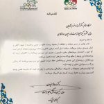 لذا توانمندي هاي متعهدانه و دلسوزانه سركار عالي پيشينه اي را رقم زده است كه شايسته تقدير توسط كميسيون ورزش و محيط زيست كميته ملي المپيك مي باشيد.